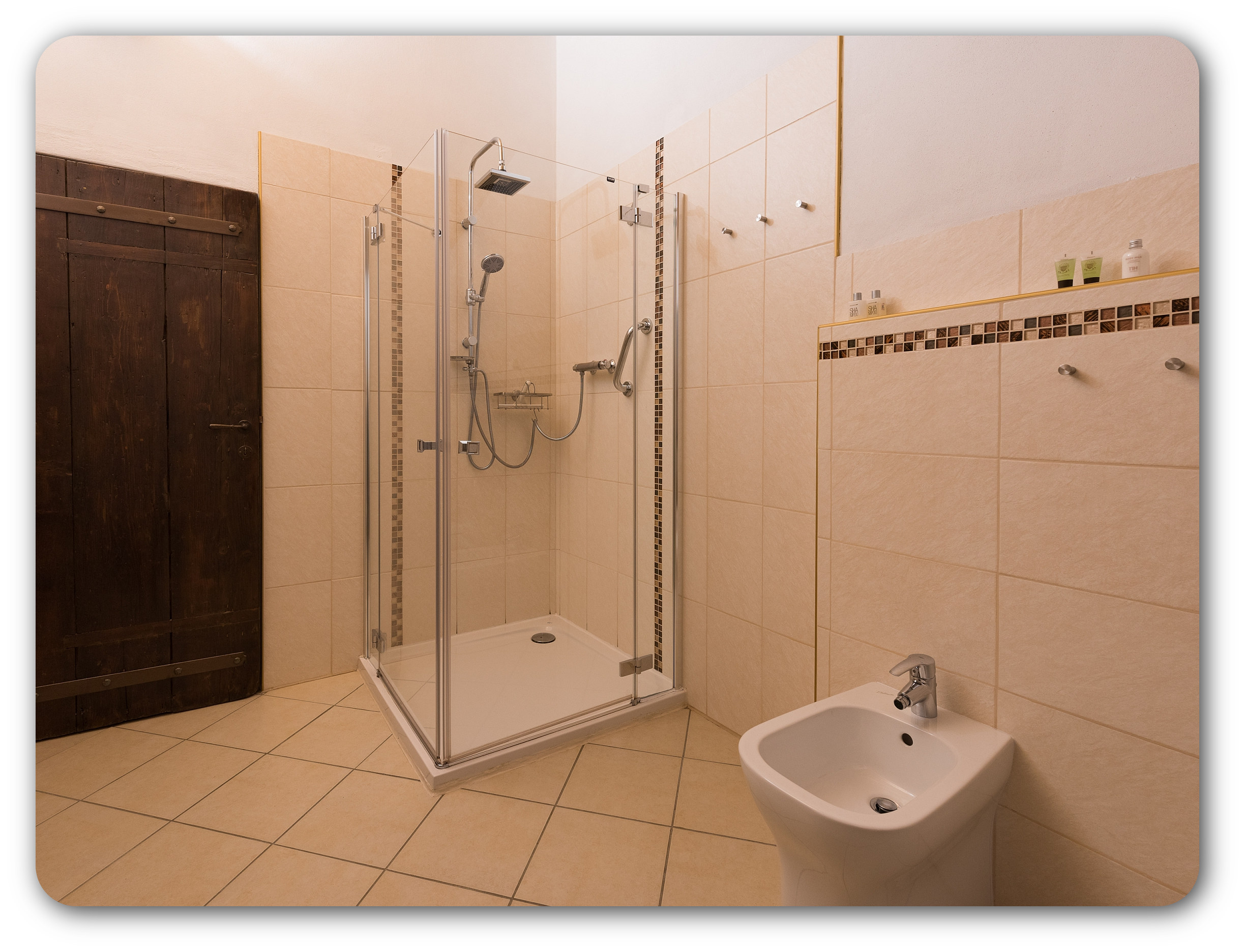 • soap dispenser, courtesy kit (shower gel, shampoo, etc.)